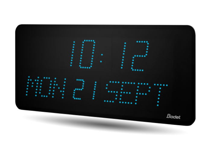 STYLE II 10 DATE (94692x) - это вторичные цифровые часы-календарь от ведущей компании BODET. Данная модель часов синхронизируется с управляющими мастер-часами поляризованными импульсами +24 В. Она оснащена ярким точечным LED-дисплеем, время на котором отображается в двух режимах: 12 часов или 24 часа (на выбор). Дополнительно часы отображают день недели, дату и месяц. Дисплей имеет 4-уровневую регулировку яркости. Высота цифровых символов составляет 10 см, а буквенных - 7 см. Цвет отображаемых символов имеет 5 разновидностей на выбор клиента: красные, зеленые, желтые, синие, белые. Особым преимуществом данной модели является память хранения данных (в случае сбоя питания) до 15 дней. Средняя точность составляет ±0.2 секунды в сутки. Дополнительно часы поддерживают автоматическое переключение с летнего времени на зимнее (и наоборот), а также имеют вечный автоматический календарь. Питание осуществляется от сети ~110 - 230 В.
