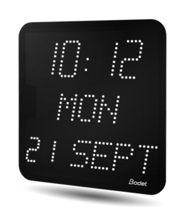 STYLE II 7 DATE (94662x) - это вторичные цифровые часы-календарь от ведущей компании BODET. Данная модель часов синхронизируется с управляющими мастер-часами поляризованными импульсами +24 В. Она оснащена ярким точечным LED-дисплеем, время на котором отображается в двух режимах: 12 часов или 24 часа (на выбор). Дополнительно часы отображают день недели, дату и месяц. Также имеется функция комбинированного режима отображаемой информации: секунды, номер недели или температура. Для отображения температуры в часах имеется встроенный датчик температуры. Плюс ко всему данная модель поддерживает 14 предустановленных языков с возможностью отображения информации на 2-х выбранных. Дисплей имеет 4-уровневую регулировку яркости. Высота цифровых символов составляет 7 см, а буквенных - 5 см. Цвет отображаемых символов имеет 5 разновидностей на выбор клиента: красные, зеленые, желтые, синие, белые. Особым преимуществом данной модели является память хранения данных (в случае сбоя питания) до 15 дней. Средняя точность составляет ±0.2 секунды в сутки. Дополнительно часы поддерживают автоматическое переключение с летнего времени на зимнее (и наоборот), а также имеют вечный автоматический календарь. Питание осуществляется от сети ~110 - 230 В.
