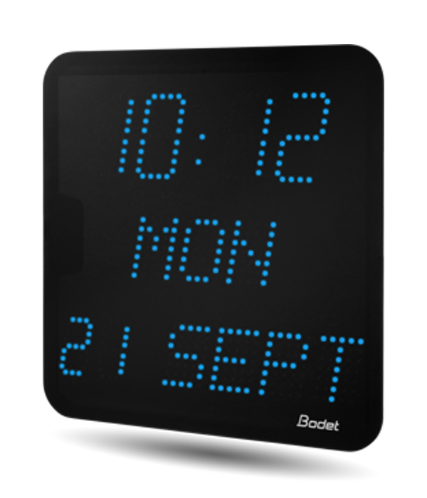 STYLE II 7 DATE (94665x) - это вторичные цифровые часы-календарь от ведущей компании BODET. Данная модель часов синхронизируется с управляющими мастер-часами по протоколу Afnor. Она оснащена ярким точечным LED-дисплеем, время на котором отображается в двух режимах: 12 часов или 24 часа (на выбор). Дополнительно часы отображают день недели, дату и месяц. Также имеется функция комбинированного режима отображаемой информации: секунды, номер недели или температура. Для отображения температуры в часах имеется встроенный датчик температуры. Плюс ко всему данная модель поддерживает 14 предустановленных языков с возможностью отображения информации на 2-х выбранных. Дисплей имеет 4-уровневую регулировку яркости. Высота цифровых символов составляет 7 см, а буквенных - 5 см. Цвет отображаемых символов имеет 5 разновидностей на выбор клиента: красные, зеленые, желтые, синие, белые. Особым преимуществом данной модели является память хранения данных (в случае сбоя питания) до 15 дней. Средняя точность составляет ±0.2 секунды в сутки. Дополнительно часы поддерживают автоматическое переключение с летнего времени на зимнее (и наоборот), а также имеют вечный автоматический календарь. Питание осуществляется от сети ~110 - 230 В.