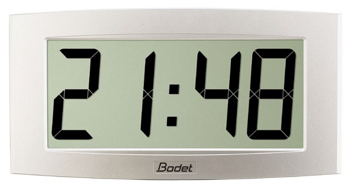 BODET CRISTALYS 14 (938641x) – вторичные цифровые часы от компании BODET, синхронизация которых выполняется по радиосигналу от DHF передатчика. Качественный LCD дисплей с высокой яркостью и углом обзора 160° отображает информацию символами 14 см, что гарантирует отличную видимость и читаемость текста с расстояния до 60 м, а встроенный кварцевый механизм в сочетании с регулярной синхронизацией обеспечивают высокую точность и стабильность работы устройства. На дисплей выводится время (12/24 ч на выбор), дата, № недели, год и температура, при этом есть возможность установить трансляцию только времени или же поочередное отображение времени и других доступных параметров. Часы выпускаются в экстра плоском корпусе из ABS пластика в 3-х вариантах цвета (алюминиевый, бордовый, белый). Питание реализовано от 4-х сменных АКБ типа LR 14, для экономии энергии предусмотрена функция энергосбережения.