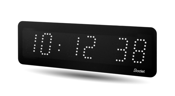 STYLE II 5S (94623x) - это вторичные цифровые светодиодные часы от ведущей компании BODET. Данная модель часов синхронизируется с управляющими мастер-часами от передатчика DCF. Она оснащена ярким точечным LED-дисплеем, время на котором отображается в виде: Ч : М : С (часы, минуты, секунды), в режимах 12 часов или 24 часа (на выбор). Также имеется функция комбинированного режима отображаемой информации: время и дата, время и номер недели. Яркость дисплея имеет 4-уровневую регулировку, а высота символов составляет 5 см. Цвет отображаемых символов имеет 5 разновидностей на выбор клиента: красные, зеленые, желтые, синие, белые. Особым преимуществом данной модели является память, хранящая данные (в случае сбоя питания) до 15 дней. Средняя точность составляет ±0.2 секунды в сутки. Дополнительно часы поддерживают автоматическое переключение с летнего времени на зимнее (и наоборот), а также имеют вечный автоматический календарь. Питание осуществляется от сети ~230 В. Плюс ко всему часы поддерживают подключение внешнего пульта для управления таймером (приобретается отдельно).