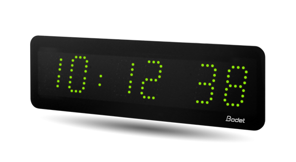 STYLE II 5S (94624x) - это вторичные цифровые светодиодные часы от ведущей компании BODET. Данная модель часов синхронизируется с управляющими мастер-часами по беспроводной связи DHF. Она оснащена ярким точечным LED-дисплеем, время на котором отображается в виде: Ч : М : С (часы, минуты, секунды), в режимах 12 часов или 24 часа (на выбор). Также имеется функция комбинированного режима отображаемой информации: время и дата, время и номер недели. Яркость дисплея имеет 4-уровневую регулировку, а высота символов составляет 5 см. Цвет отображаемых символов имеет 5 разновидностей на выбор клиента: красные, зеленые, желтые, синие, белые. Особым преимуществом данной модели является память, хранящая данные (в случае сбоя питания) до 15 дней. Средняя точность составляет ±0.2 секунды в сутки. Дополнительно часы поддерживают автоматическое переключение с летнего времени на зимнее (и наоборот), а также имеют вечный автоматический календарь. Питание осуществляется от сети ~110 - 230 В. Плюс ко всему часы поддерживают подключение внешнего пульта для управления таймером (приобретается отдельно).