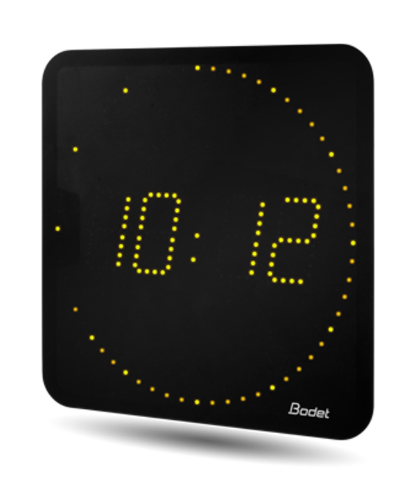 STYLE II 7 ELLIPSE (94655x) - это вторичные цифровые светодиодные часы от ведущей компании BODET. Данная модель часов синхронизируется с управляющими мастер-часами по протоколу Afnor. Она оснащена ярким точечным LED-дисплеем, время на котором отображается в двух режимах: 12 часов или 24 часа (на выбор). При этом, часы и минуты отображаются в виде цифровых значений, а секунды - точечно по кругу. Также имеется функция поочередного режима отображаемой информации: время, дата, номер недели и температура. Яркость дисплея имеет 4-уровневую регулировку, а высота символов составляет 7 см. Цвет отображаемых символов имеет 5 разновидностей на выбор клиента: красные, зеленые, желтые, синие, белые. Особым преимуществом данной модели является память хранения данных (в случае сбоя питания) до 15 дней. Средняя точность составляет ±0.2 секунды в сутки. Дополнительно часы поддерживают автоматическое переключение с летнего времени на зимнее (и наоборот), а также имеют вечный автоматический календарь. Питание осуществляется от сети ~110 - 230 В.