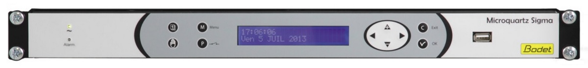 SIGMA P – первичные часы от компании Bodet, предназначенные для реализации проводных или беспроводных систем часофикации на объектах различной площади и назначения. На основании собственной временной базы TCXO, обновляемой по сети GPS, FI или DCF, первичные часы выполняют синхронизацию всех ведомых вторичных часов по DHF, IRIG B / AFNOR или импульсной линии, управляют башенными часами и внешним оборудованием инженерных и охранных систем по заранее установленным алгоритмам через 3 программируемых релейных выхода. Конфигурирование выполняется через специализированное программное обеспечение для ПК с последующей передачей настроек на SIGMA P через USB порт. Дополнительно предусмотрена возможность расширения функциональных возможностей мастер часов путем установки до 2-х опциональных карт.