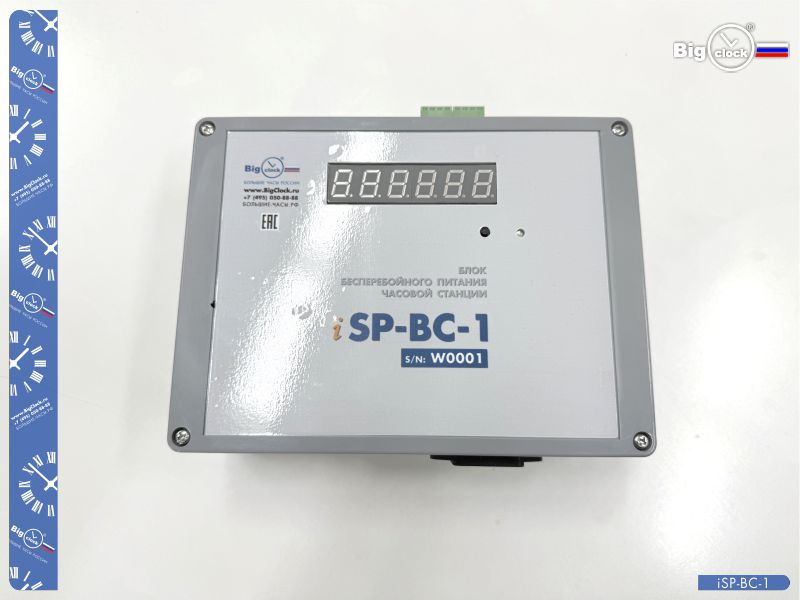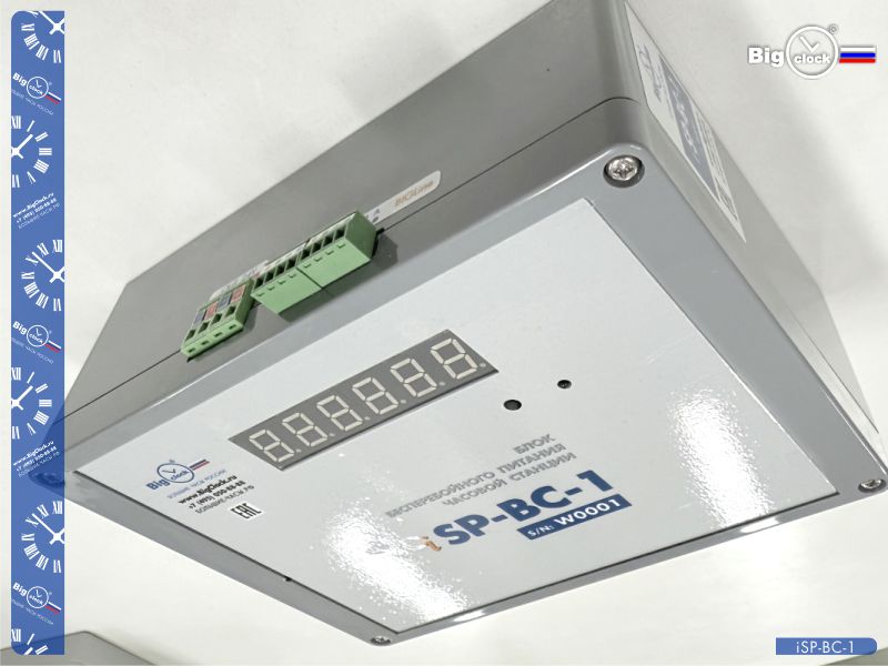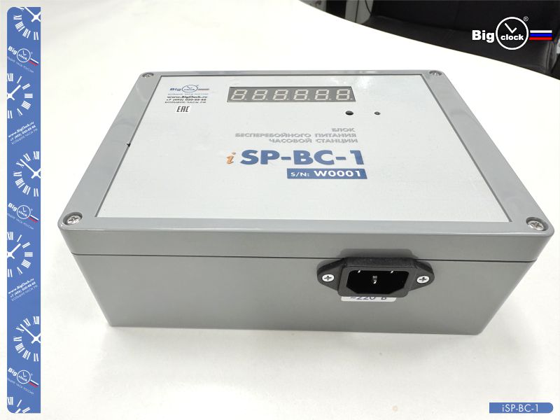 BigClock iSP-BC-1-2 — это блок бесперебойного питания часовых станций BigClock, который используется для обеспечения автономной работы и электрозащиты указанных устройств. Совместимы механизмы часовых станций ЧС-БК-GPS-2К-iAtlas, ЧС-БК-GPS-4К-iAtlas, ЧС-БК-GPS-М2К-iAtlas и ЧС-БК-GPS-М4К-iAtlas; они являются базовыми приборами при построении систем часофикации BigClock развернутых на различных объектах.