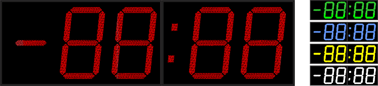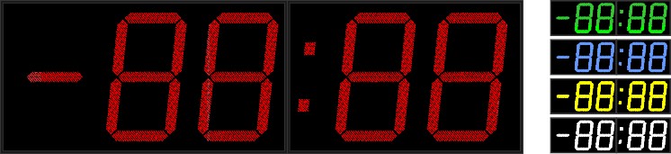 Дисплей часов создан на основе светодиодов SMD 3528 с чипом Epistar с диаметром 5 мм, которые размещены на светодиодной секции в пять рядов и создают четыре (4) знака высотой 1000 мм, видные на расстоянии до 350 метров. Угол половины яркости устройства = 60˚. Если требуется подстройка яркости в зависимости от фонового освещения, приобретается соответствующий блок. Цвет светодиодов определяется при заказе и может быть красным, зелёным, жёлтым, синим или белым.