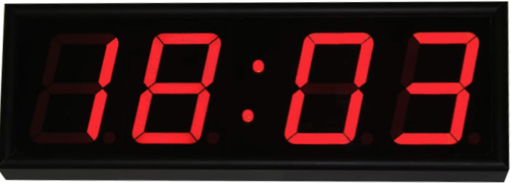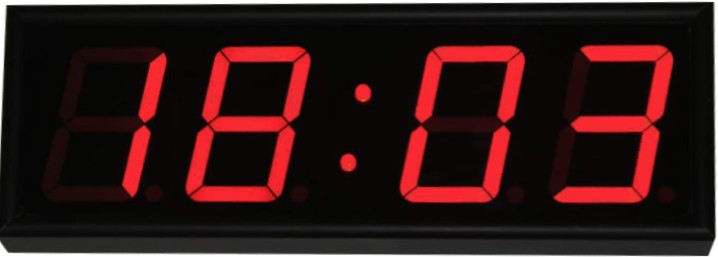 Дисплей часов создан на основе 7-и сегментной светодиодной матрицы, которая размещена на светодиодной секции и создаёт четыре (4) знака высотой 100 мм, видные на расстоянии до 30 метров. Угол половины яркости устройства = 60˚. Если требуется подстройка яркости в зависимости от фонового освещения, приобретается соответствующий блок. Цвет светодиодов красный.