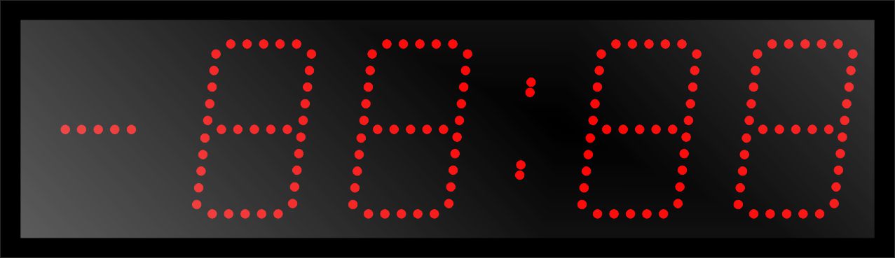 Дисплей часов создан на основе светодиодов SMD 3528 с чипом Epistar с диаметром 5 мм, которые размещены на светодиодной секции в один ряд и создают четыре (4) знака высотой 100 мм, видные на расстоянии до 35 метров. Угол половины яркости устройства = 60˚. Если требуется подстройка яркости в зависимости от фонового освещения, приобретается соответствующий блок. Цвет светодиодов определяется при заказе и может быть красным, зелёным, жёлтым, синим или белым.