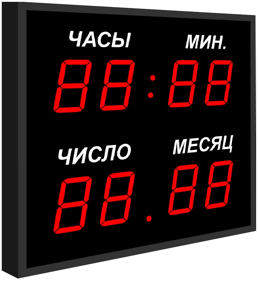 Цифровые светодиодные часы-календарь Р-100х8b эксплуатируются в помещениях для отслеживания и одновременного отображения точного текущего времени (формат: часы, минуты) и даты (число, месяц).