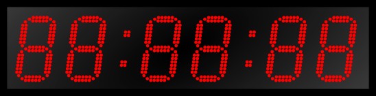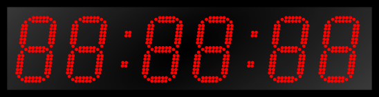 Дисплей часов создан на основе светодиодов SMD 3528 с чипом Epistar, которые размещены на светодиодной секции в два ряда и создают шесть (6) знаков высотой 210мм, видные на расстоянии до 70 метров. Угол половины яркости устройства = 60˚. Если требуется подстройка яркости в зависимости от фонового освещения, приобретается соответствующий блок. Цвет светодиодов определяется при заказе и может быть красным, зелёным, жёлтым, синим или белым.