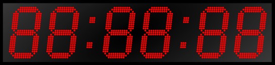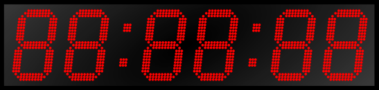 Дисплей часов создан на основе светодиодов SMD 3528 с чипом Epistar, которые размещены на светодиодной секции в три ряда и создают шесть (6) знаков высотой 270мм, видные на расстоянии до 90 метров. Угол половины яркости устройства = 60˚. Если требуется подстройка яркости в зависимости от фонового освещения, приобретается соответствующий блок. Цвет светодиодов определяется при заказе и может быть красным, зелёным, жёлтым, синим или белым.