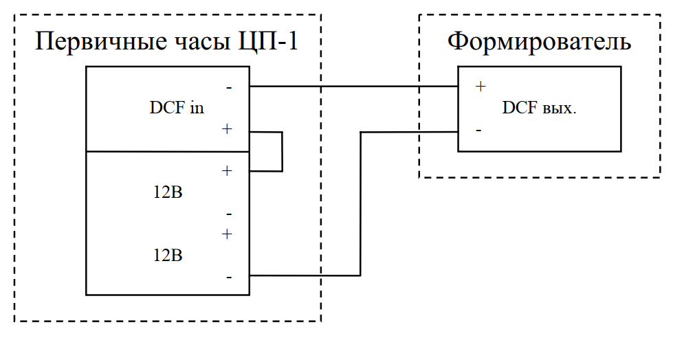 Формирователь ПСС-Д может применяться также с первично-вторичными и самоустанавливающимися часами, реле времени и иными приборами, которые принимают синхронизационный DCF-сигнал.