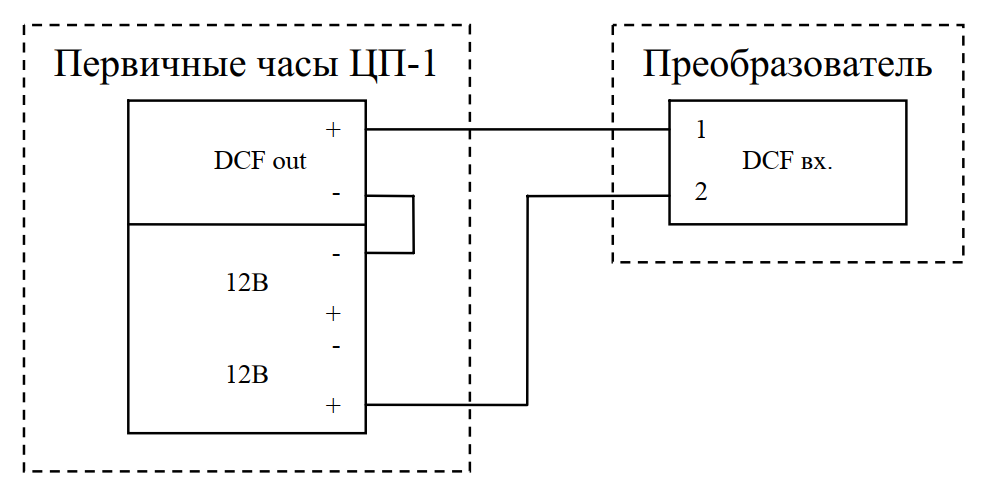 На вход прибора поступают сигналы точного времени DCF от первичных, первично-вторичных или мастер-часов, а также от часовой станции. Преобразователь с периодичностью 1 раз в 1 секунду на обоих выходах (RS-232 и RS-485) одновременно формирует последовательность данных о точном времени, которая привязана к началу секунды. Выходной DCF-сигнал формируется учитывая заданный часовой пояс, также можно задать автоматический переход на сезонное время.