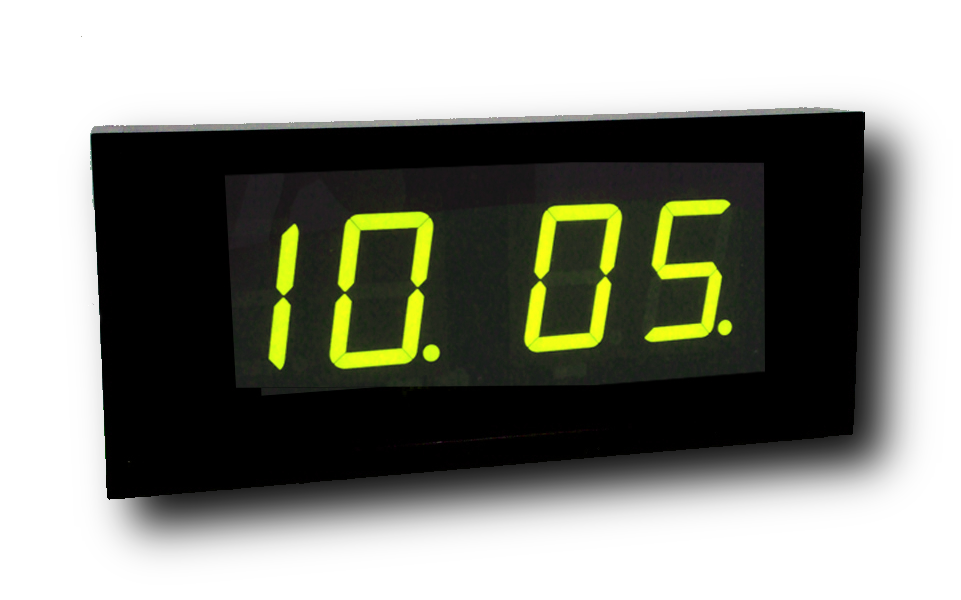 Двухсторонний дисплей часов выполнен на основе семисегментных светодиодных индикаторов; на каждой из сторон помещается четыре (4) знака высотой сто (100) мм. Цвет цифр (желтый/зеленый/красный) выбирается при заказе. Хорошая видимость информации на часах с расстояния до пятидесяти (50) метров. Возможна настройка часовых поясов и автоматического перехода на сезонное время.