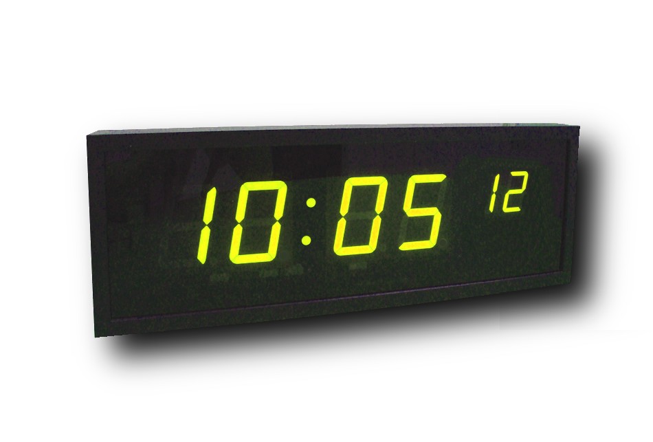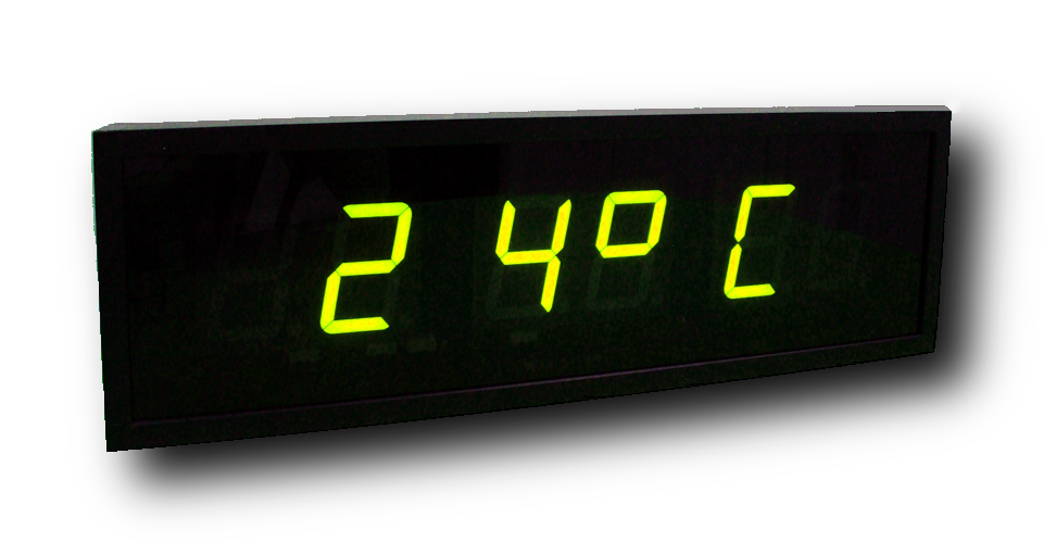 Дисплей часов создан на основе семисегментных светодиодных индикаторов; на нем помещается шесть (6) знаков различной высоты: 4 сто (100) мм и 2 (секунды) на 57 мм, которые расположены в верхней строчке. Цвет цифр в данном исполнении желтый. Хорошая видимость информации на часах с расстояния до пятидесяти (50) метров. Возможна настройка часовых поясов и автоматического перехода на сезонное время.