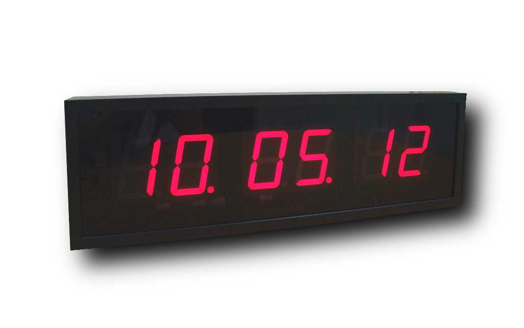 Дисплей часов создан на основе семисегментных светодиодных индикаторов; на нем помещается шесть (6) знаков высотой сто (100) мм. Цвет цифр в данном исполнении красный. Хорошая видимость информации на часах с расстояния до пятидесяти (50) метров. Возможна настройка часовых поясов и автоматического перехода на сезонное время.