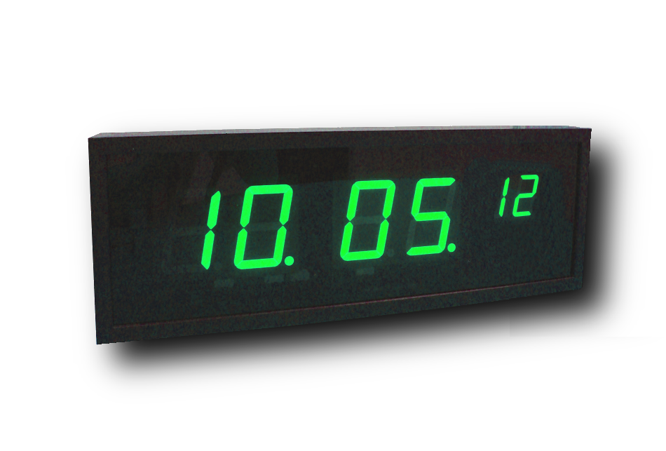 Дисплей часов создан на основе семисегментных светодиодных индикаторов; на нем помещается шесть (6) знаков различной высоты: 4 сто (100) мм и 2 (секунды) на 57 мм, которые расположены в верхней строчке. Цвет цифр в данном исполнении зеленый. Хорошая видимость информации на часах с расстояния до пятидесяти (50) метров. Возможна настройка часовых поясов и автоматического перехода на сезонное время.