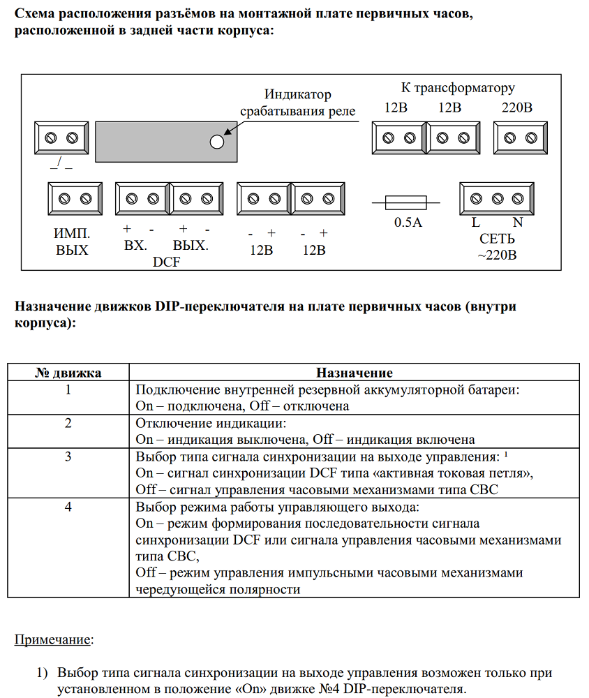 Первичные кварцевые цифровые часы с усилителем импульсов ЦП-2-R1-У48 применяются в качестве базового прибора для создания системы единого времени (СЕВ) на каком-либо объекте. Их задача - обеспечение данными о точном времени вторичных аналоговых и аналоговых самоустанавливающихся (стрелочных) часов, входящих в систему. Двухканальный усилитель, которым оснащены часы, позволяет работать со вторичными часами настроенными на амплитуду управляющих импульсов 48В, а также для наращивания дальности линии управления без увеличения сечения соединяющих кабелей. Каждый канал усилителя оборудован защитой от перегрузки по току. Максимальный ток нагрузки усилителя - 4А.