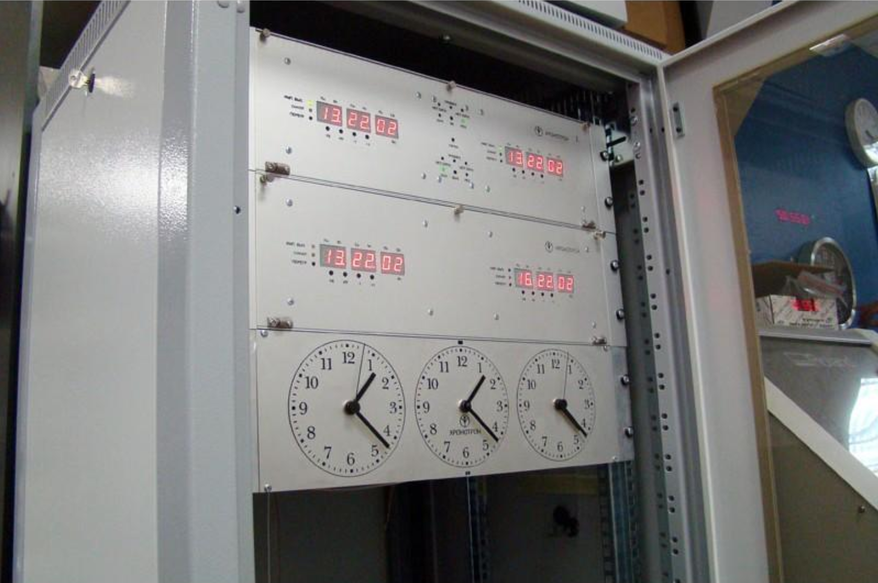 Часы выполнены в Rack-корпусе установки в телекоммуникационный шкаф 19'', габариты 482*238*132 мм (3U). Электропитание организовано от сети переменного тока напряжением 220В, а также предусмотрены входы для подключения внешних АКБ (2 * 12В). Помимо этого, за счет внутренней батареи при отключении питания часы поддерживают внутренний отсчет времени до 30 суток.