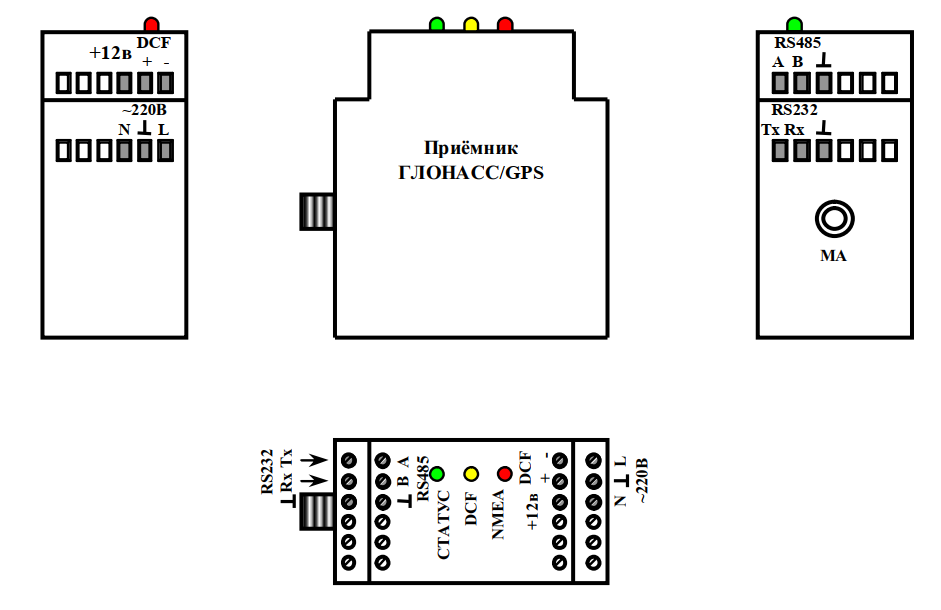 | Точность синхронизации импульсов DCF-сигнала по отношению к метке времени «1PPS», не хуже | 100 мкс |