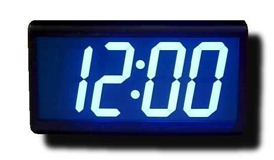Дисплей часов создан на основе семисегментных светодиодных индикаторов; на нем помещается четыре (4) знака высотой сто (100) мм. Цвет цифр в данном исполнении синий. Возможна настройка часовых поясов и автоматического перехода на сезонное время.