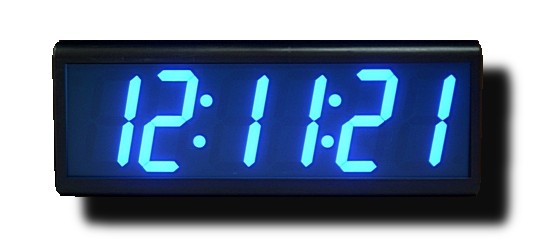 Двухсторонний дисплей часов создан на основе семисегментных светодиодных индикаторов; на каждой из сторон помещается шесть (6) знаков высотой сто (100) мм. Цвет цифр в данном исполнении синий. Возможна настройка часовых поясов и автоматического перехода на сезонное время.