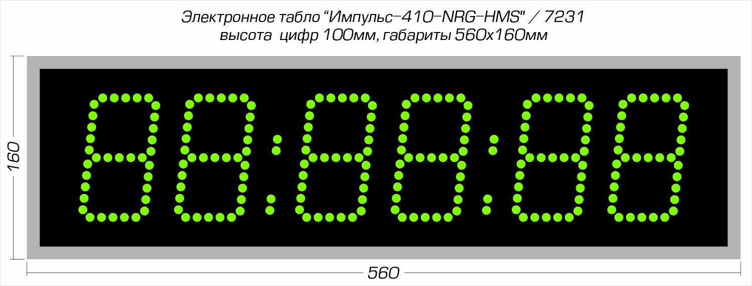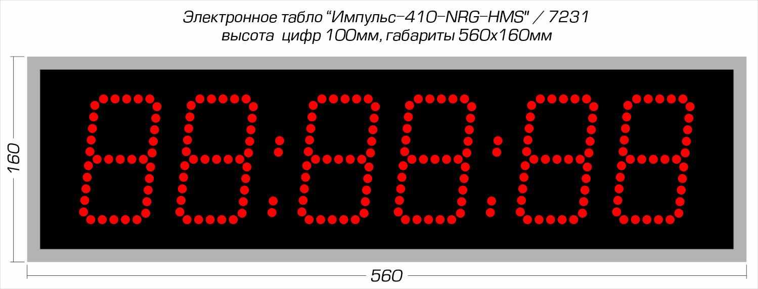 | Количество знаков, их высота | 6 разрядов, 100 мм |