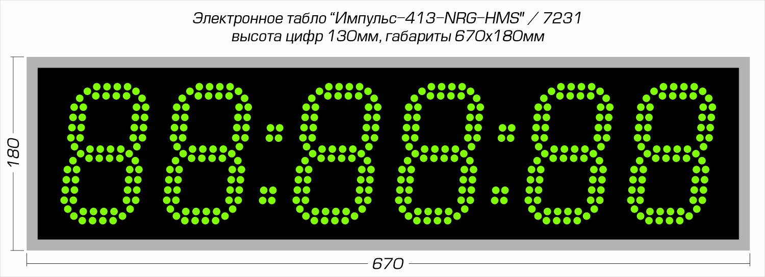 | Количество знаков, их высота | 6 разрядов, 130 мм |