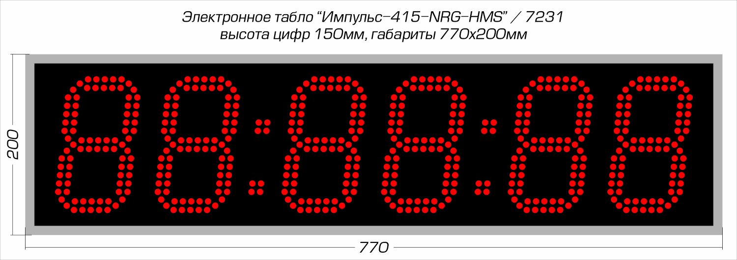 | Количество знаков, их высота | 6 разрядов, 150 мм |