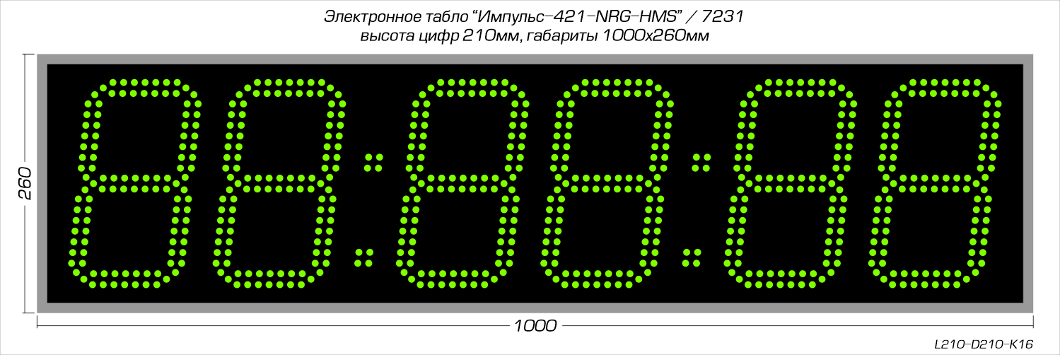 | Количество знаков, их высота | 6 разрядов, 210 мм |