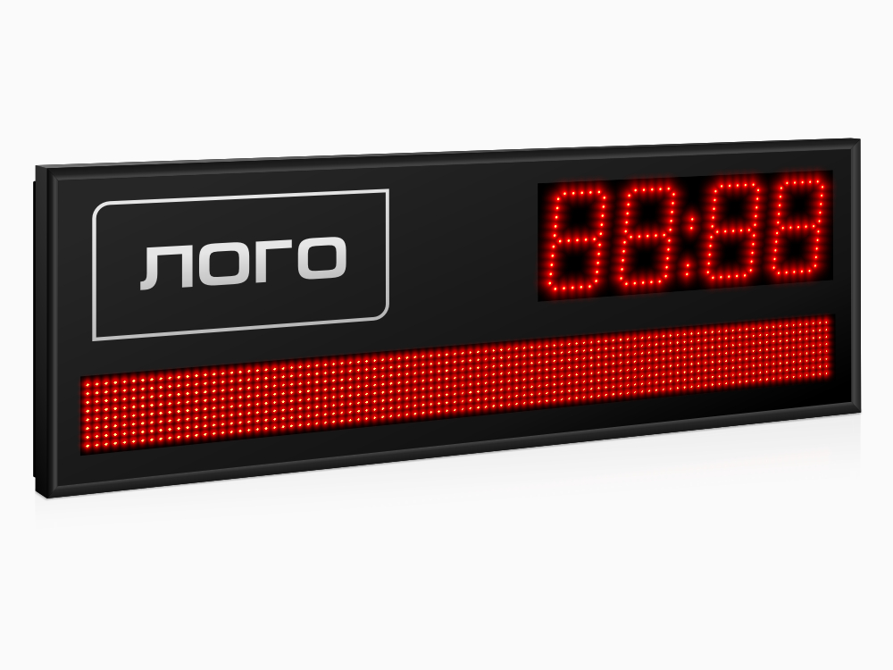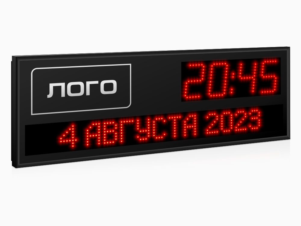 | Количество знаков, их высота | 4 разряда по 100 мм (время) и текстовое поле высотой 60 мм (дата и день недели, полностью) |