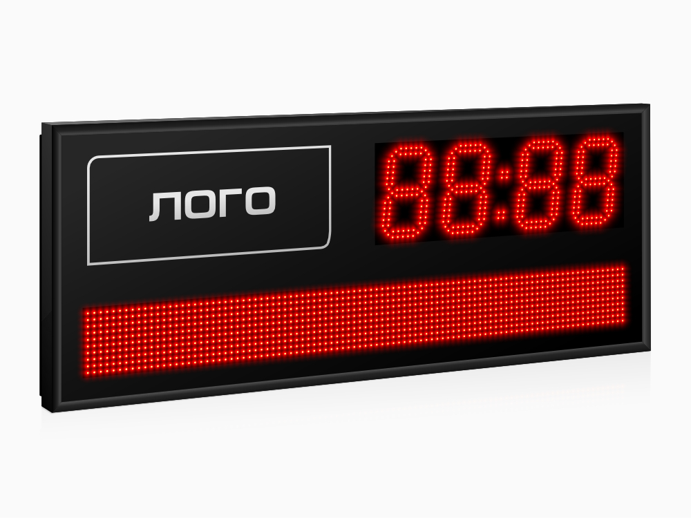 | Количество знаков, их высота | 4 разряда по 150 мм (время) и текстовое поле высотой 100 мм (дата и день недели, полностью) |