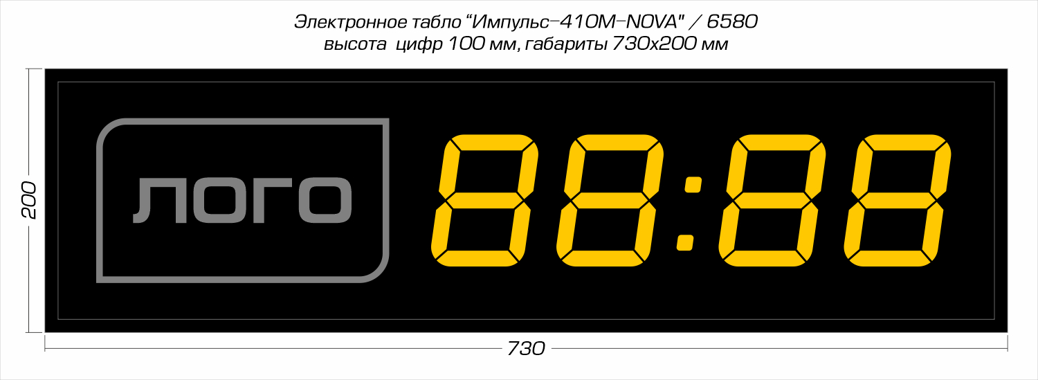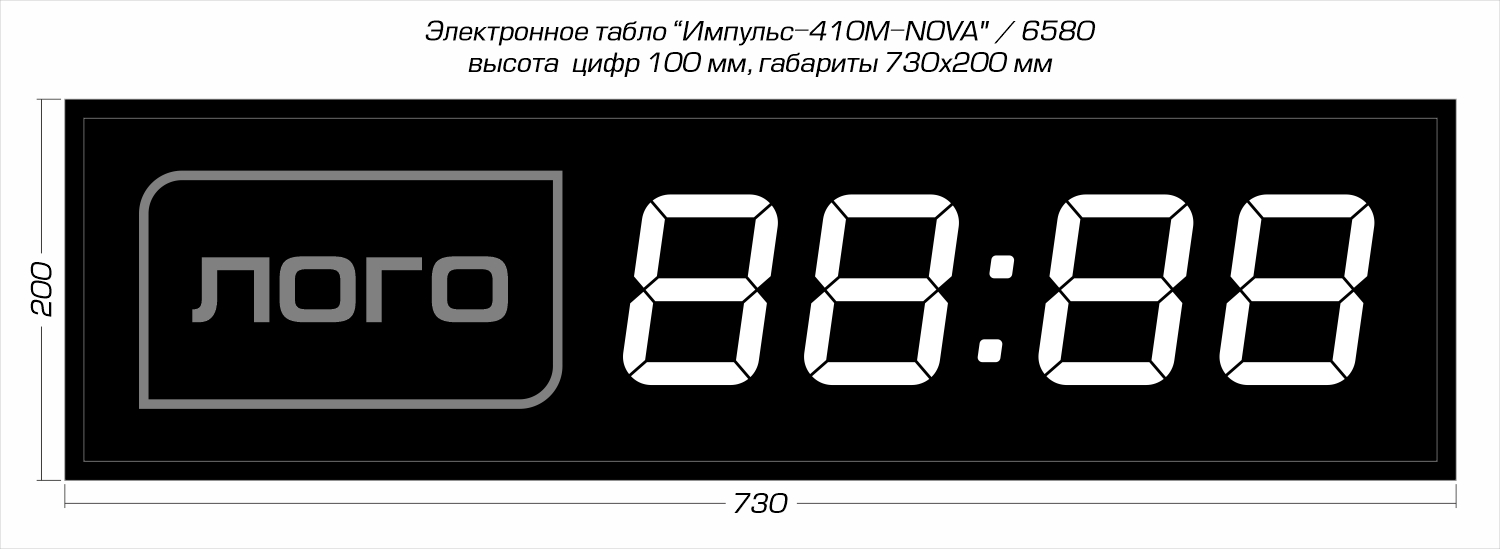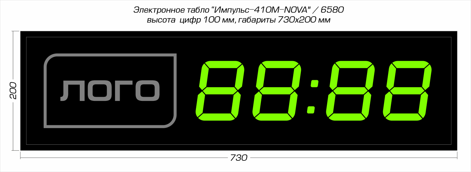 Электронные цифровые светодиодные часы Импульс-410M-NOVA | L производства компании РусИмпульс используются для попеременной демонстрации текущего времени (чч:мм) и даты (дд:мм), а также как рекламный объект — слева от индикаторов времени размещён логотип. Прибор неукоснительно точно выполняет свою основную функцию часов + помогает повышать узнаваемость бренда, формирует положительный имидж и является стильным дополнением интерьера офиса компании. Круглосуточный режим работы в помещениях (IP-54): офисы, приемные, переговорные залы, зоны проведения презентаций и другие места, где потенциально выгодно размещать объект имиджевой рекламы.