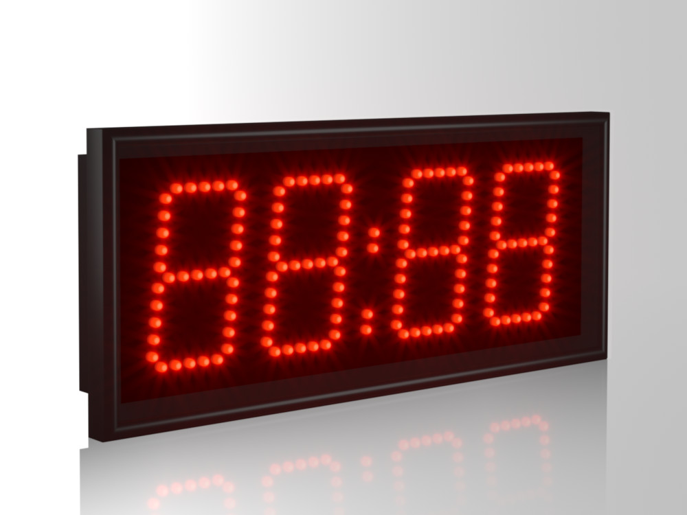 Дисплей создан из точечных светодиодов, в данной модификации они формируют четыре (4) разряда каждый высотой 100 мм. Дальность видимости до 40 метров, угол обзора в горизонтальной плоскости 120°, яркость 0,5 Кд. Базовый цвет светодиодов - красный; опционально цвет можно заменить (см. ниже).