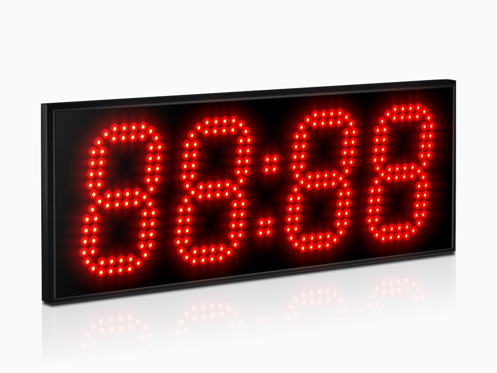 Дисплей создан из точечных светодиодов, в данной модификации они формируют четыре (4) разряда каждый высотой 130 мм. Дальность видимости до 50 метров, угол обзора в горизонтальной плоскости 120°, яркость 0,5 Кд. Базовый цвет светодиодов - красный; опционально цвет можно заменить (см. ниже).