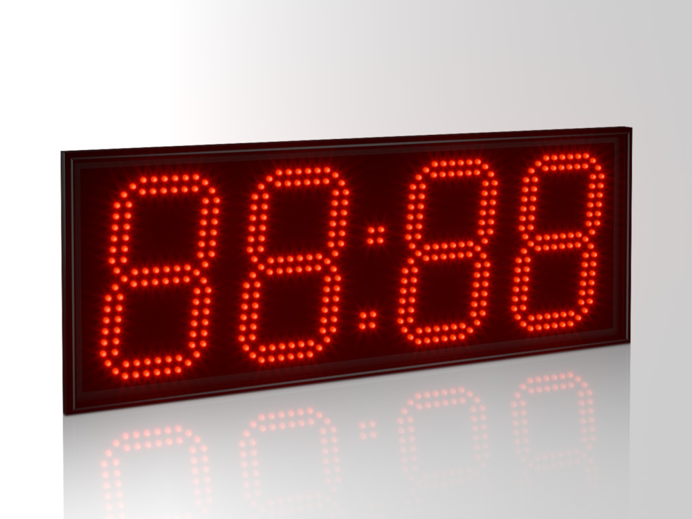 Дисплей создан из точечных светодиодов, в данной модификации они формируют четыре (4) разряда каждый высотой 180 мм. Дальность видимости до 75 метров, угол обзора в горизонтальной плоскости 120°, яркость 0,5 Кд. Базовый цвет светодиодов - красный; опционально цвет можно заменить (см. ниже).