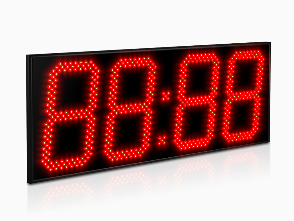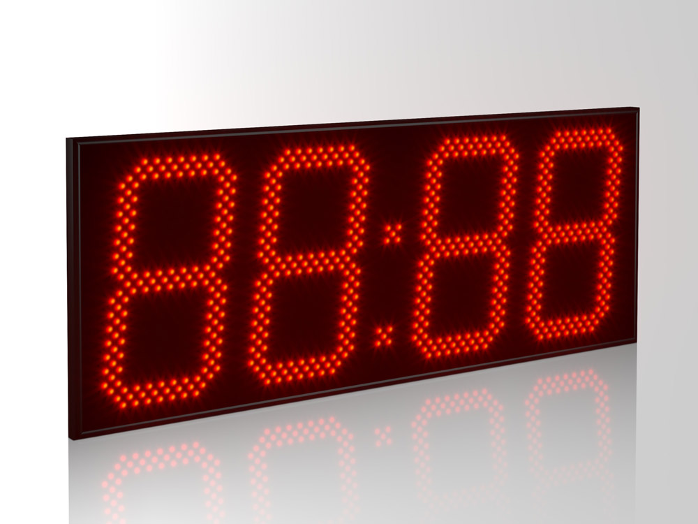 Дисплей создан из точечных светодиодов, в данной модификации они формируют четыре (4) разряда каждый высотой 240 мм. Дальность видимости до 95 метров, угол обзора в горизонтальной плоскости 120°, яркость 0,5 Кд. Базовый цвет светодиодов - красный; опционально цвет можно заменить (см. ниже).