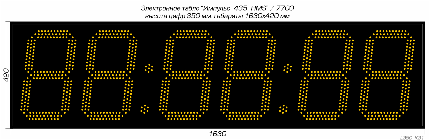 | Количество знаков, их высота | 6 разрядов, 350 мм |