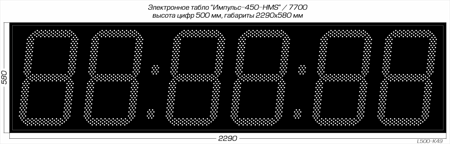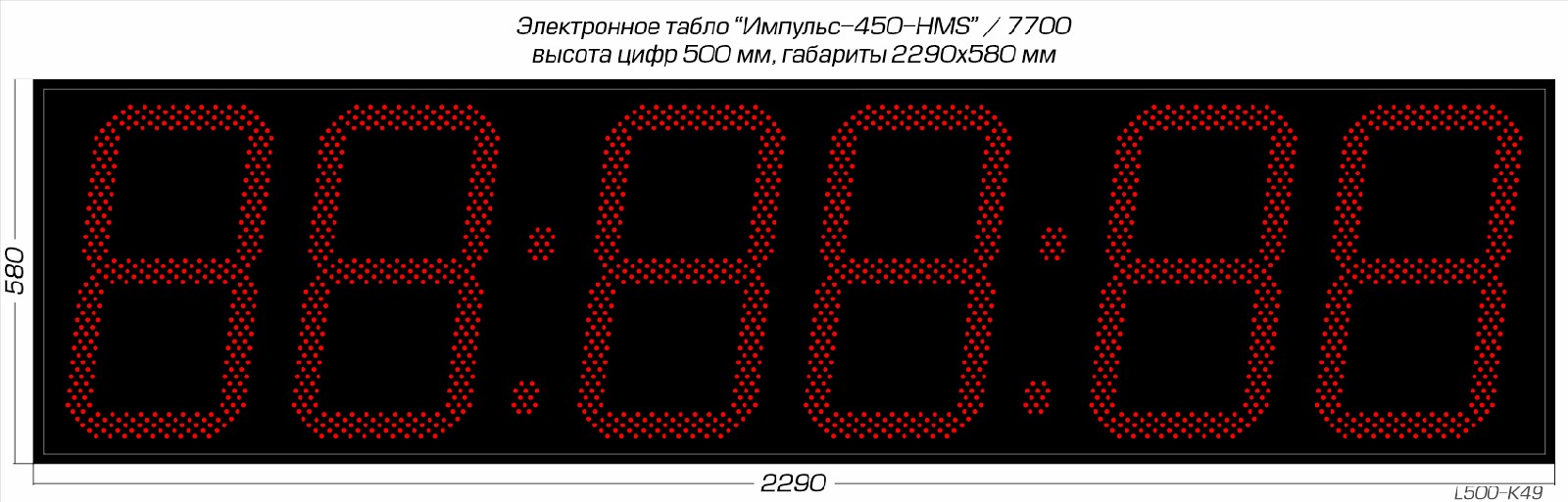 | Количество знаков, их высота | 6 разрядов, 500 мм |