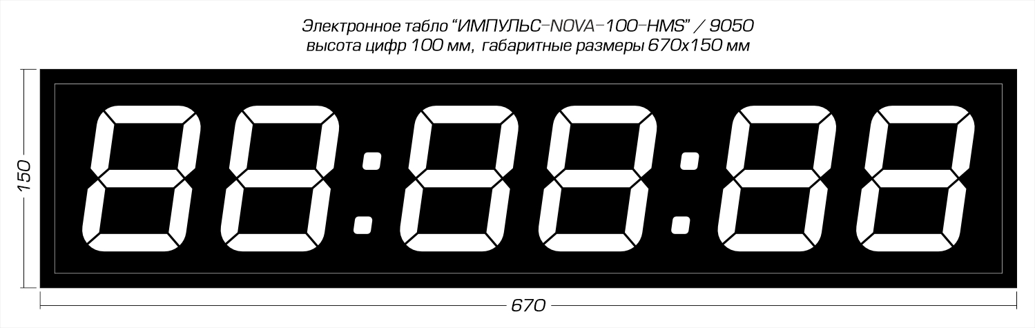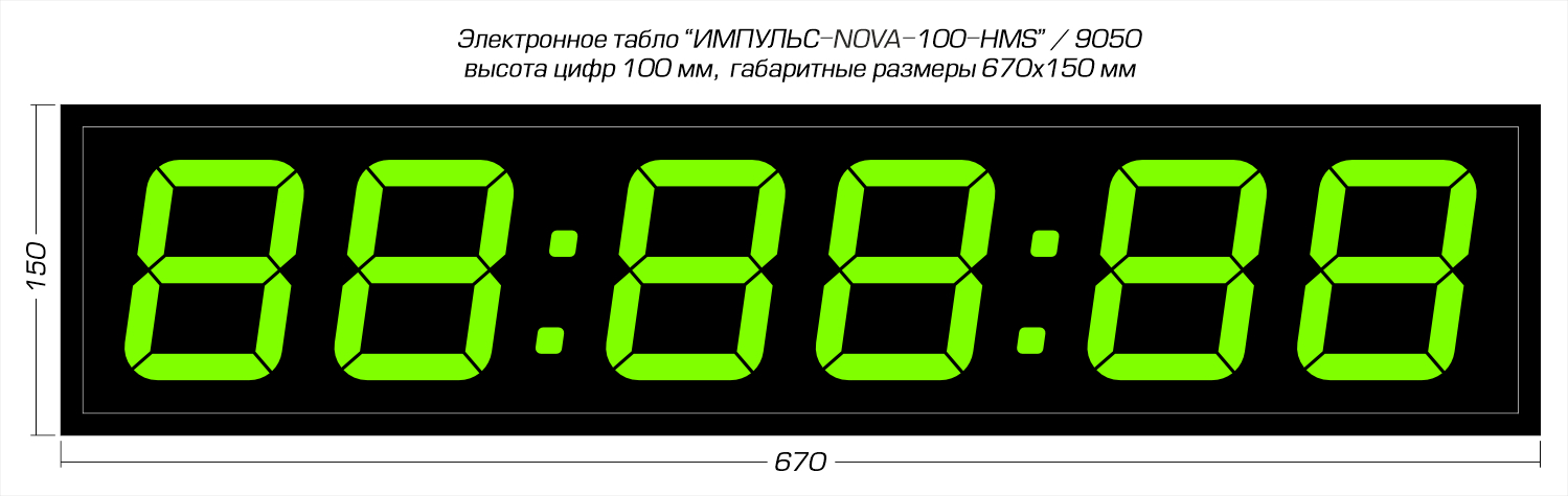 | Количество знаков, их высота | 6 разрядов, 100 мм |