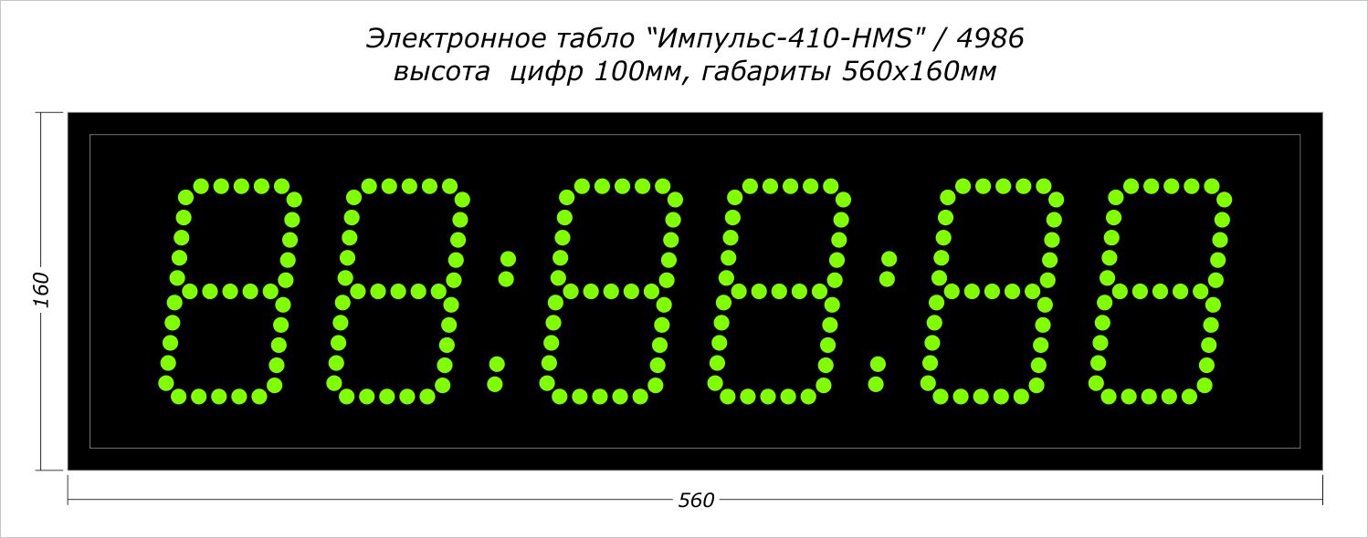 | Количество знаков, их высота | 6 разрядов, 100 мм |