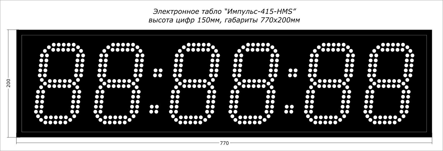 | Количество знаков, их высота | 6 разрядов, 150 мм |