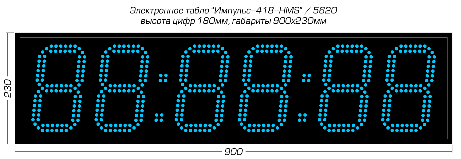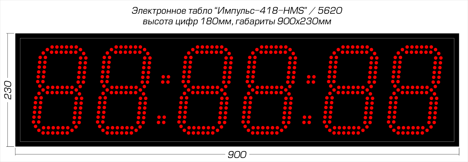 | Количество знаков, их высота | 6 разрядов, 180 мм |