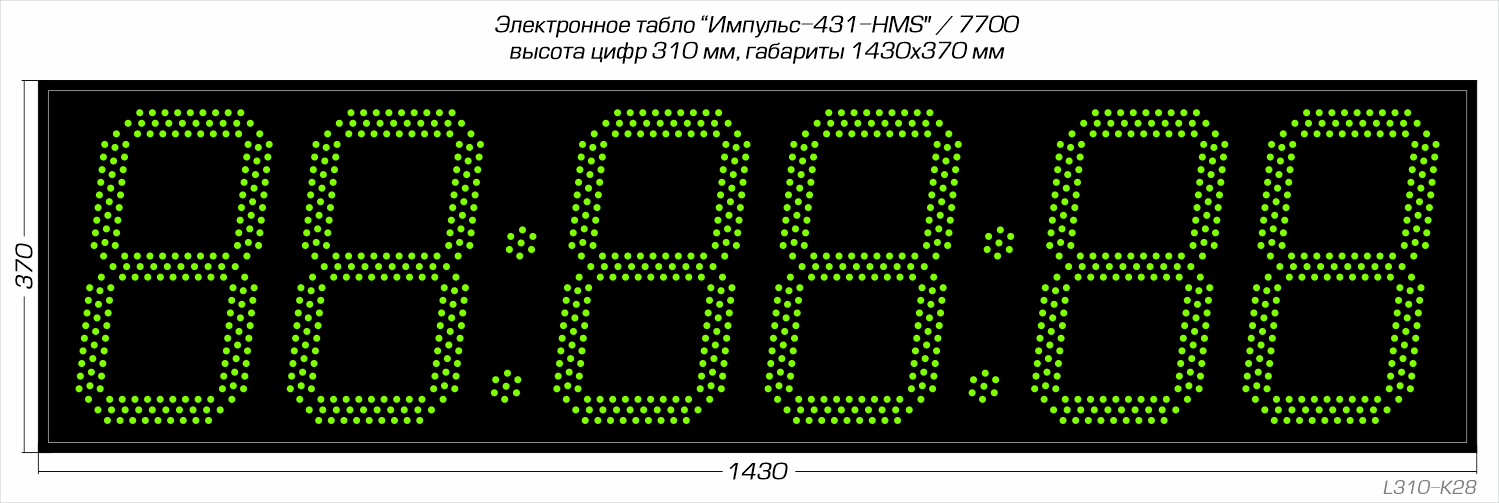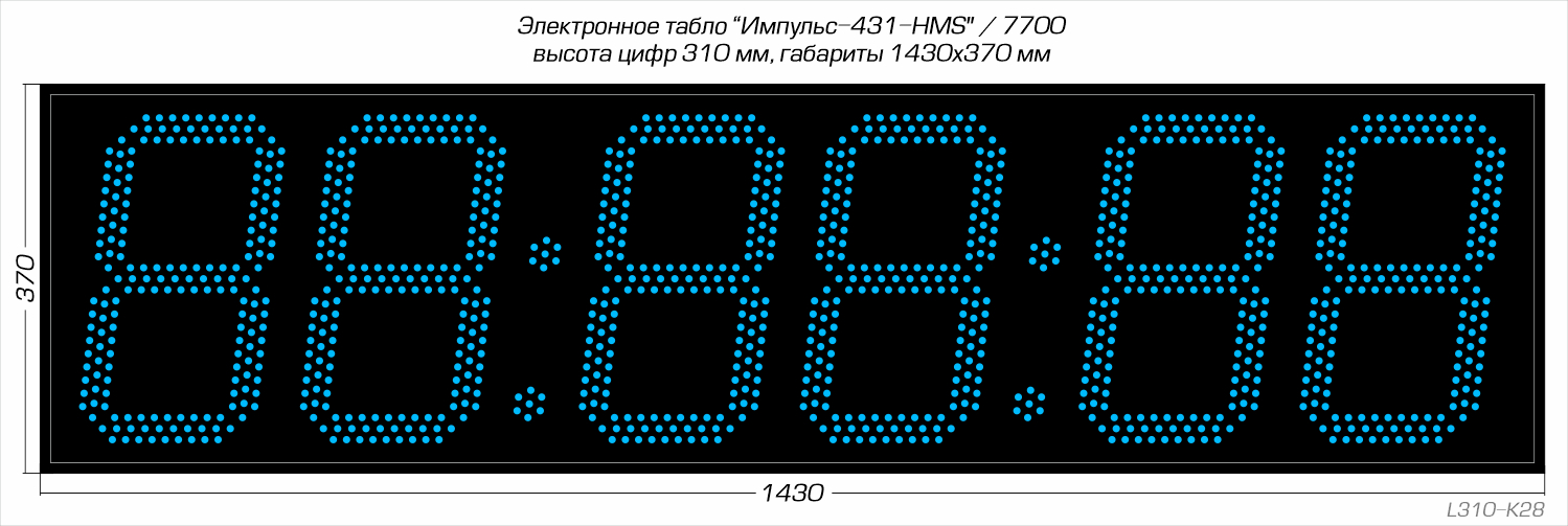 | Количество знаков, их высота | 6 разрядов, 310 мм |