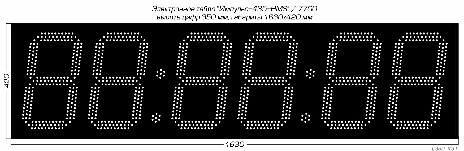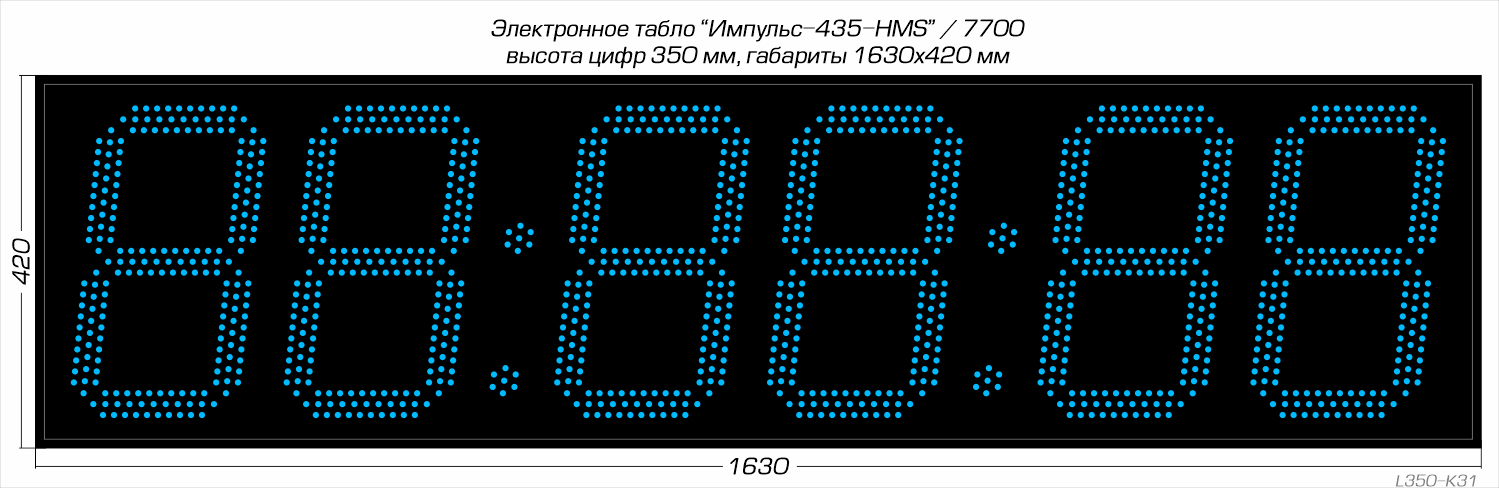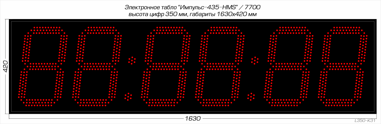 | Количество знаков, их высота | 6 разрядов, 350 мм |