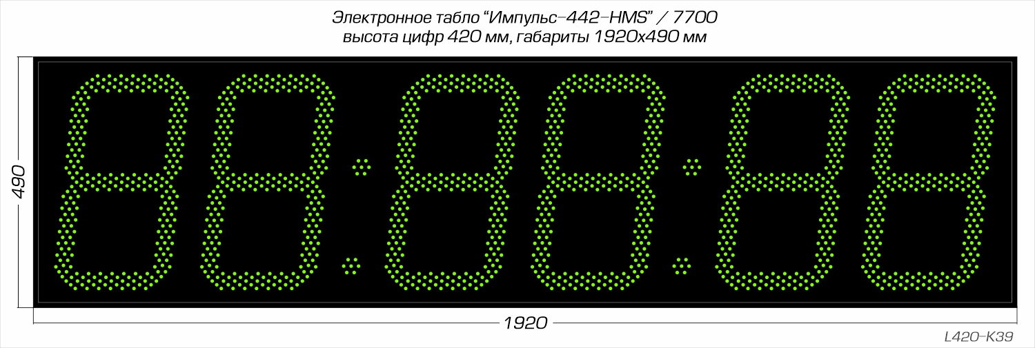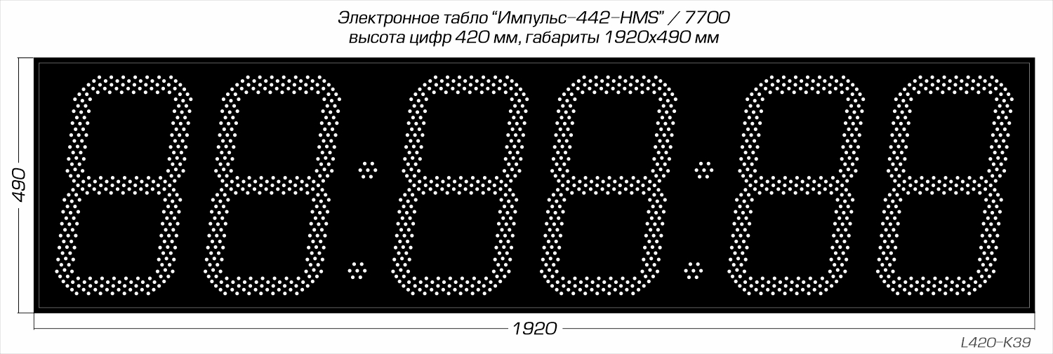 | Количество знаков, их высота | 6 разрядов, 420 мм |