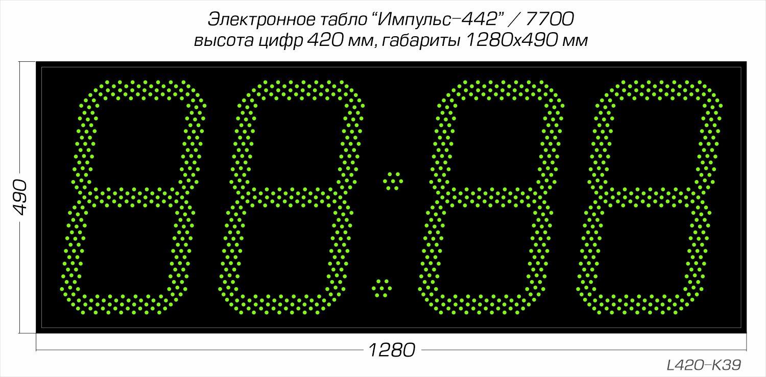 | Количество знаков, их высота | 4 разряда, 420 мм |