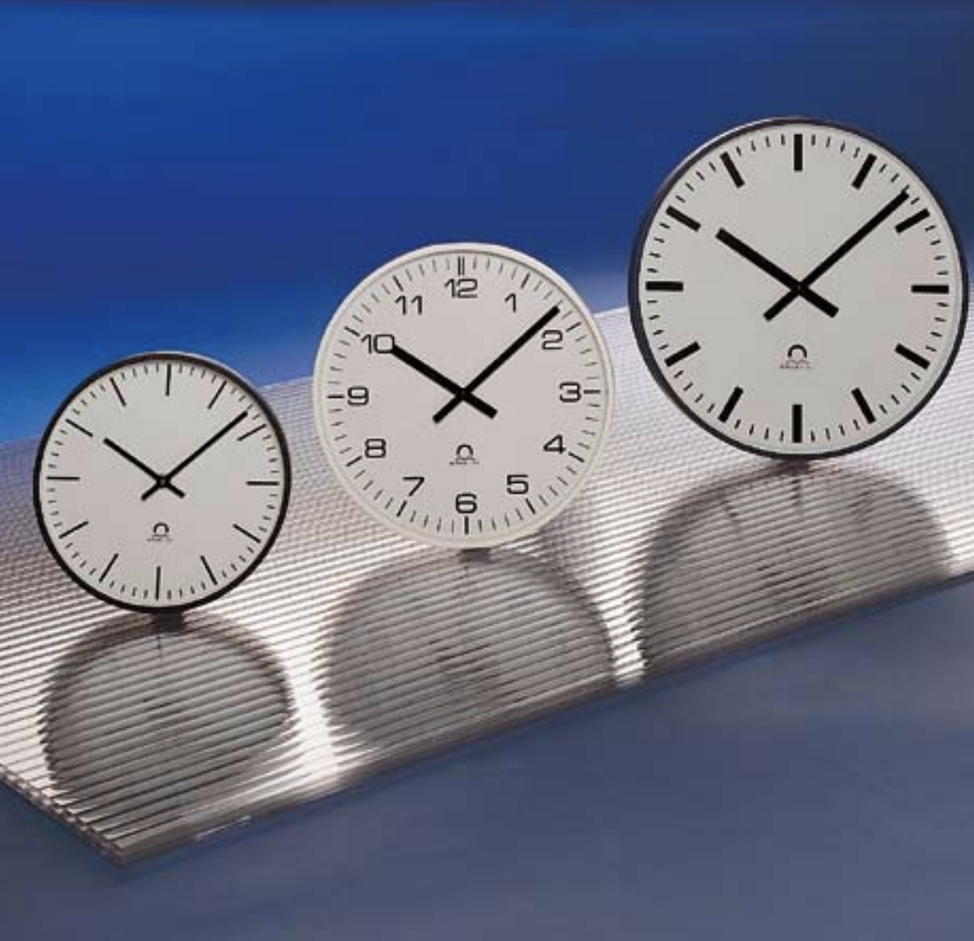 Аналоговые; ультратонкие; для внутренних инсталляций; синхронизация по системе MOBALine; аналоговый циферблат с арабскими цифрами; стрелки - часы и минуты; питание 10-20 В / 50 Гц; корпус пластик; плоское защитное стекло; диаметр циферблата 300 мм; наружный диаметр 319 мм; толщина 34 мм; вес 0.8 кг; цвет белый (RAL 9002).