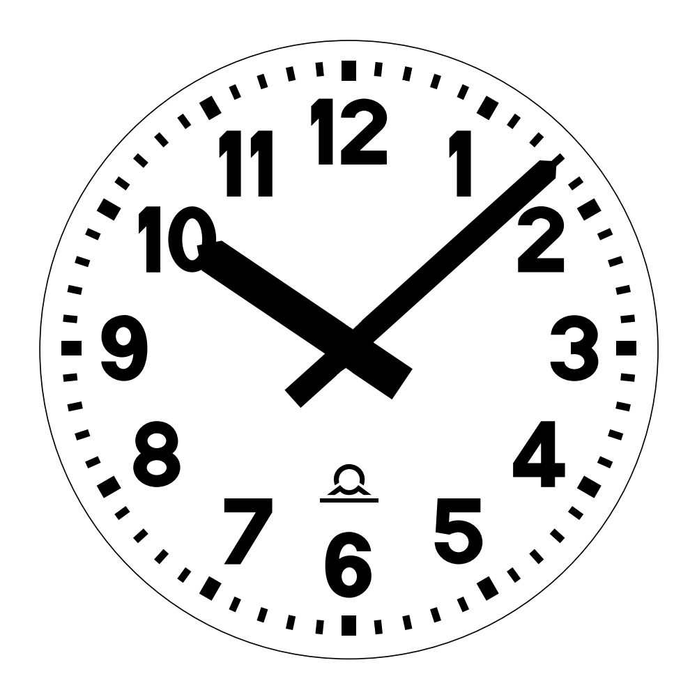 Аналоговые; для внутренних инсталляций; синхронизация по системе MOBALine; аналоговый циферблат с черными метками; стрелки - часы и минуты; питание 10-20 В / 50 Гц; корпус металл; плоское защитное стекло; диаметр циферблата 800 мм; цвет белый (RAL 9002).