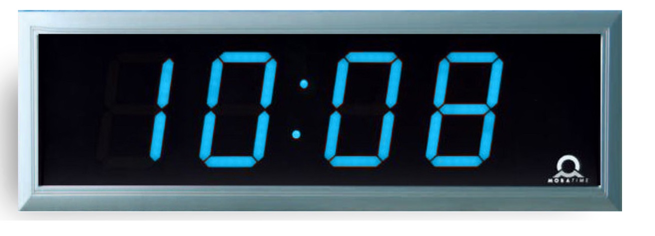 Сегментное табло; 4 цифры - час/мин; односторонние; высота цифр - 100 мм; дальность распознавания символов 40 м; синхронизация DCF 77, MOBALine и минутные импульсы 24 В; показ даты; время 12/24 ч; цвет цифр - синий; питание 220 В AC; монтаж на стену; размеры 510x169x39 мм; вес 2,4 кг; алюминиевый корпус серого цвета IP40.